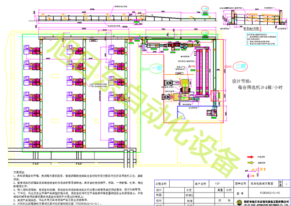 此方案為車間內(nèi)21臺(tái)生產(chǎn)設(shè)備只需要1人看管,1人放紙箱及轉(zhuǎn)運(yùn)碼好垛的成品成品即可,由以前的15人減少到了兩人,極大的節(jié)省了人工成本。本方案實(shí)現(xiàn)了紙箱自動(dòng)開箱封底、自動(dòng)箱內(nèi)套袋、空箱按機(jī)臺(tái)要箱指令自動(dòng)貼標(biāo)、自動(dòng)送至指定機(jī)臺(tái)。裝好產(chǎn)品...